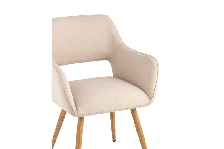 Стул Stool Group Кромвель II бежевый, широкая эргономичная спинка, удобные подлокотники, обивка плотная ткань, металлические ножки с принтом под дерево