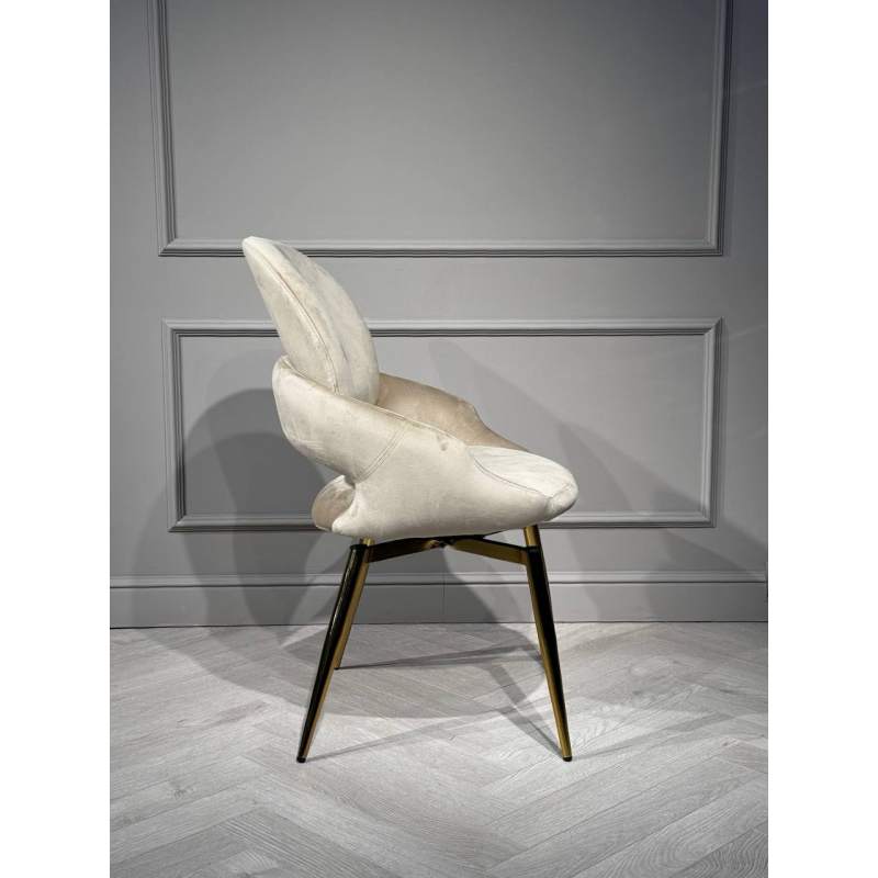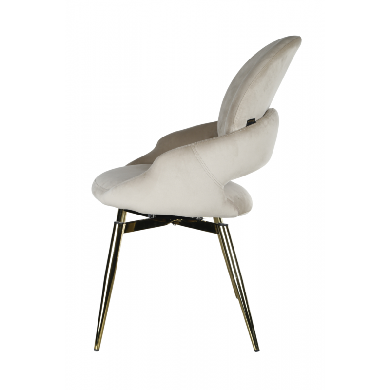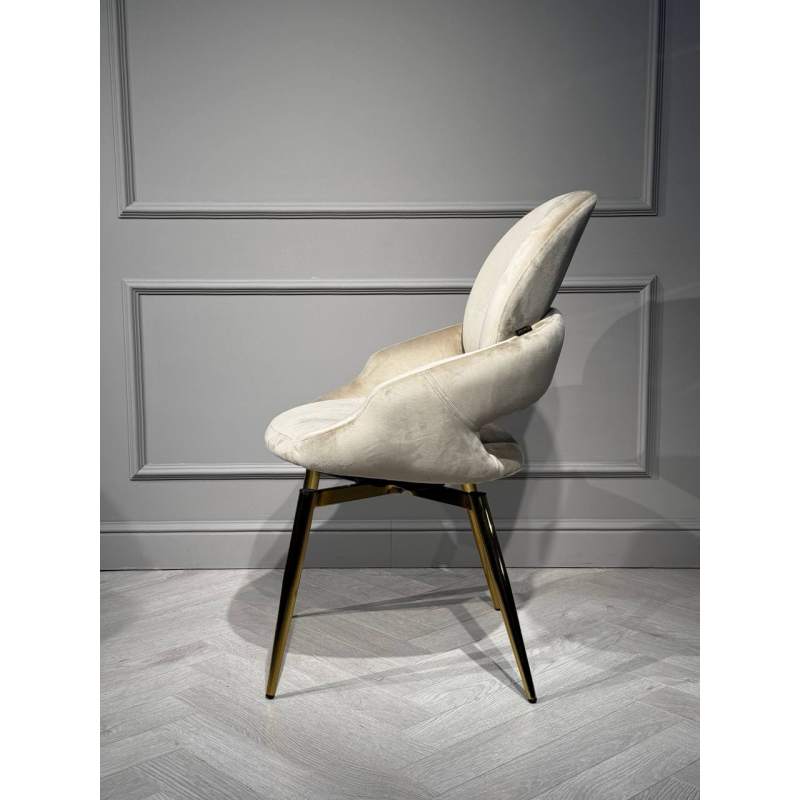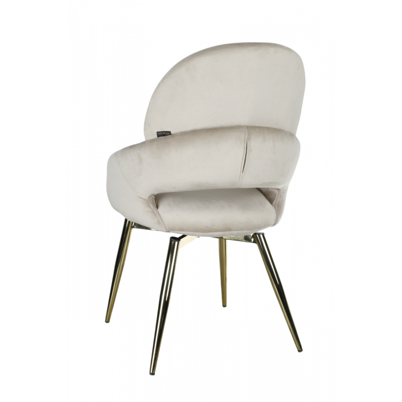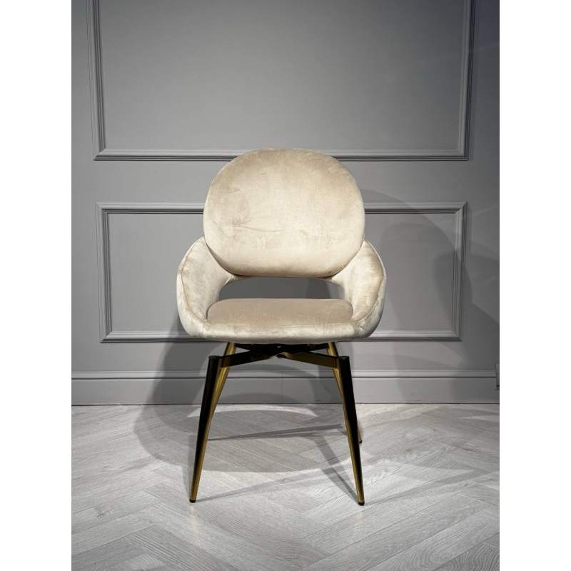 Дизайнерский обеденный стул в современном стиле с поворотным механизмом, с мягкой спинкой и сидением из велюра бежевого цвета
