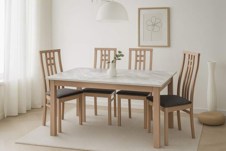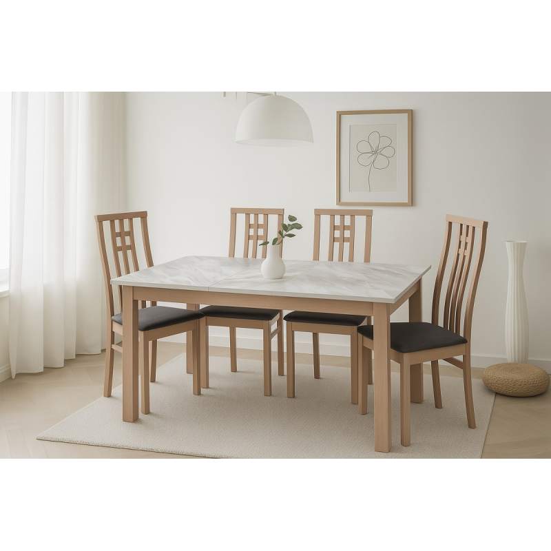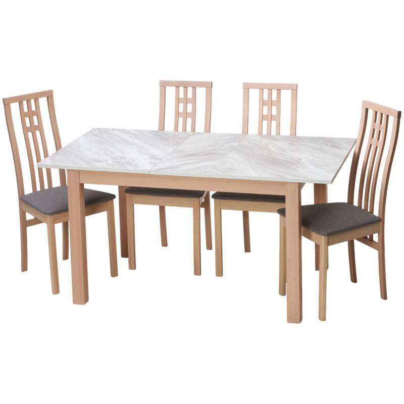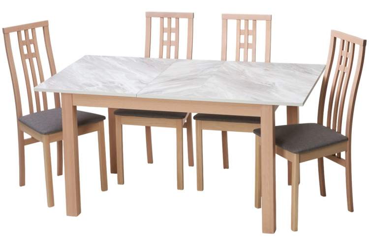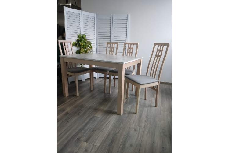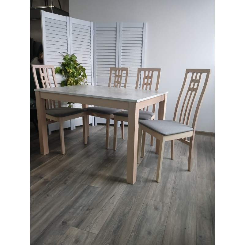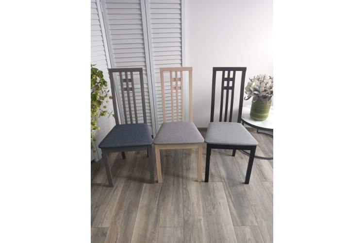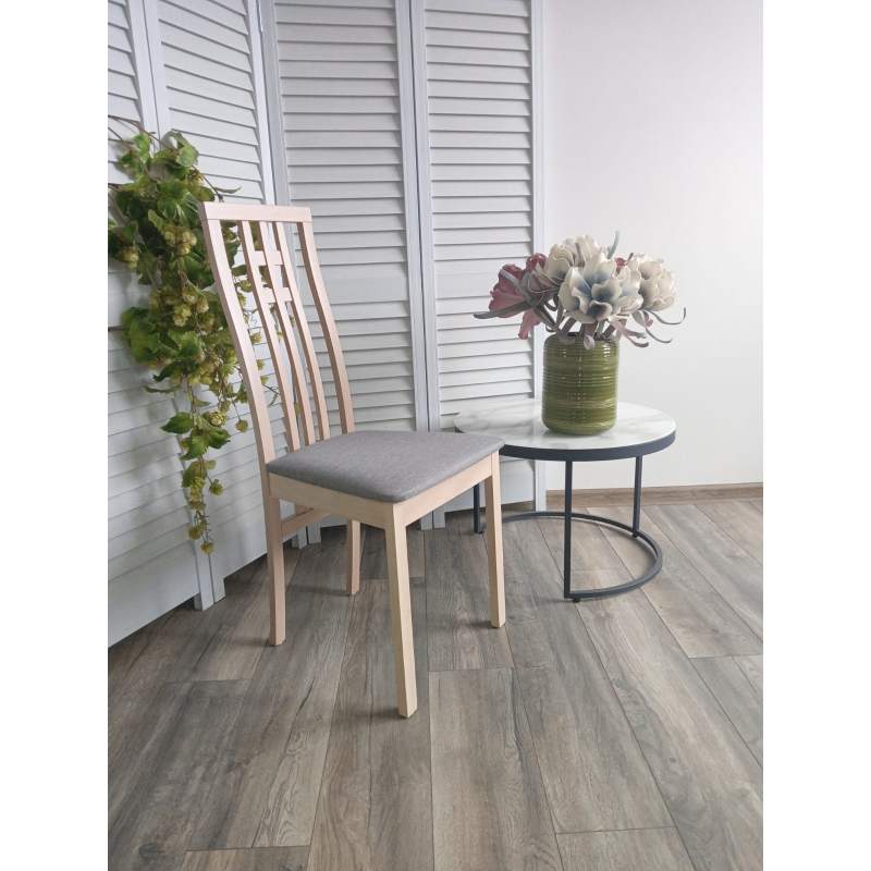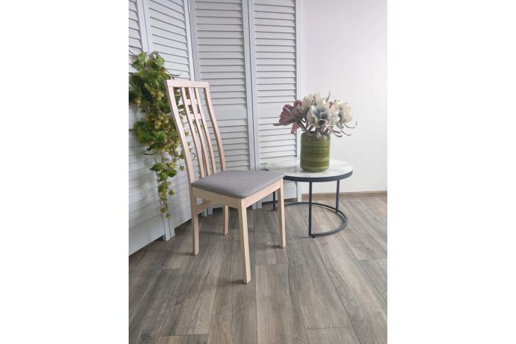 Каркас стула выполнен из массива бука, сиденье обито тканью.