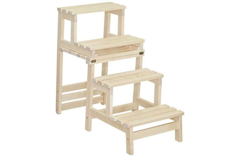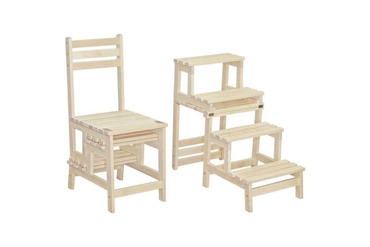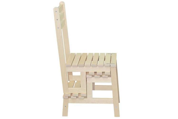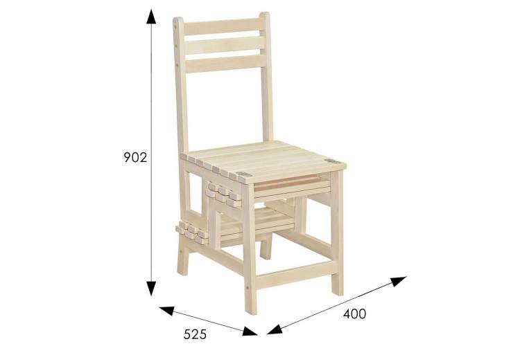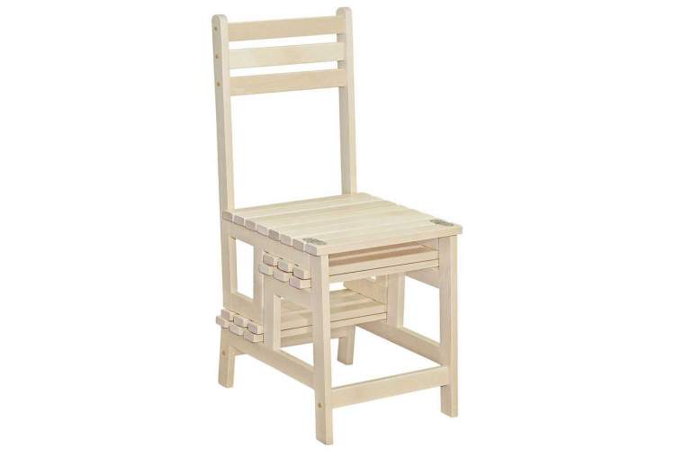 Стул со стандартным посадочным местом, одновременно и небольшая стремянка на три ступени. Вещь незаменимая в современных кухнях. Высоко расположенные вместительные навесные ящики часто оказываются недоступными для домохозяек именно из-за высоты. Даже обычного табурета, или стула иногда не хватает для того, чтобы дотянуться до нужных вещей на верхних полках. Стул-стремянка в разобранном виде позволяет достать рукой до потолка в квартире человеку даже не самого большого роста. В собранном виде – дополнительное место для сидения. Несколько вариантов цветов позволяют подобрать наиболее подходящий в вашу кухню. Каркас из натурального дерева делает стремянку прочной и надежной. Отличное приобретение, может служить подарком хозяйке.