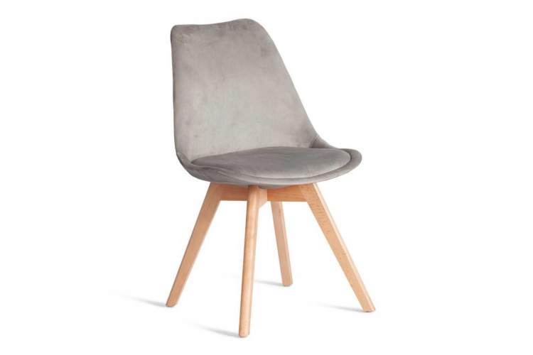 Стул TULIP SOFT (mod. 053V) / 1 шт. в упаковке дерево/пластик/вельвет, 49,5 x 54,5 x 84 см, Светло-серый (HLR 39)/натуральный
