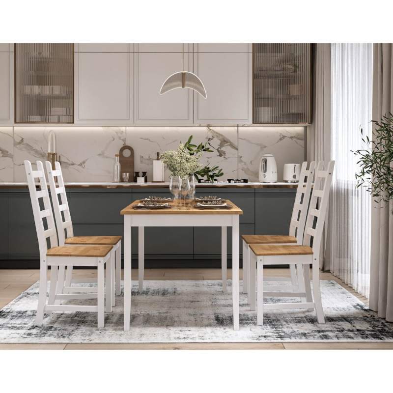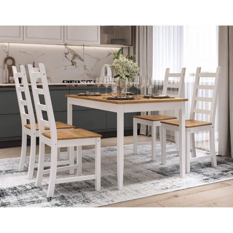Мебель изготовлена из массива сосны. Покрытие выполнено с использованием красителей на водной основе и лака на основе акриловых смол с УФ-отверждением.