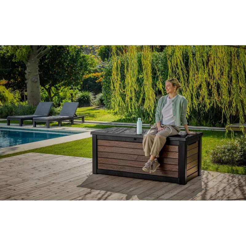 Садовый сундук Deco объёмом 630 литров — это идеальное сочетание элегантности, функциональности и долговечности. Его уникальный дизайн с имитацией дерева, выполненный с использованием инновационной технологии DecoCoat™, добавит очарования любому саду. Забудьте о ржавчине, отслоившейся краске и выцветании — наш контейнер сохранит свой привлекательный вид на долгие годы, защищая содержимое от непогоды.