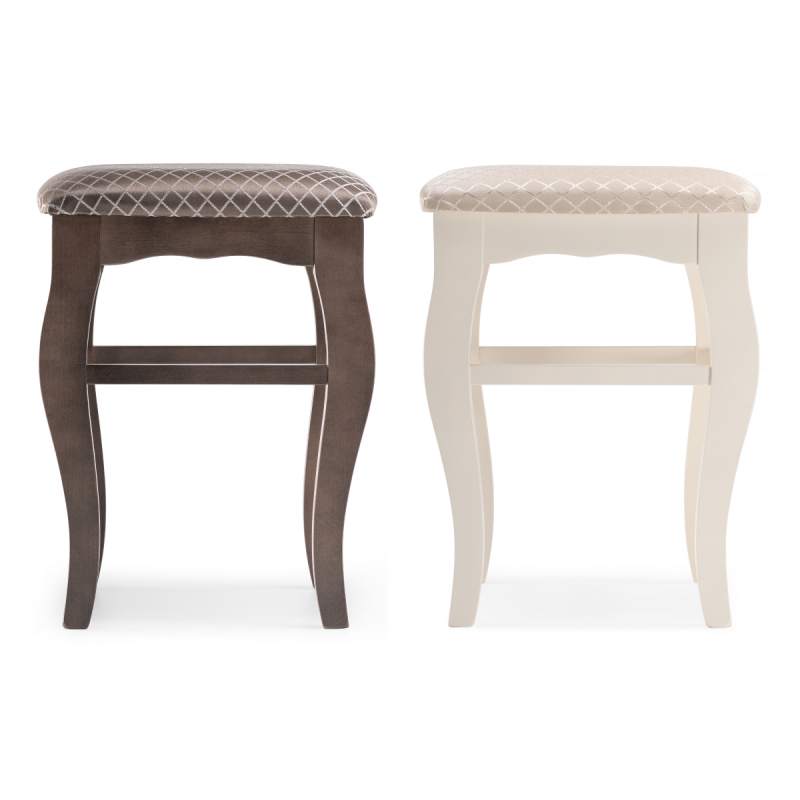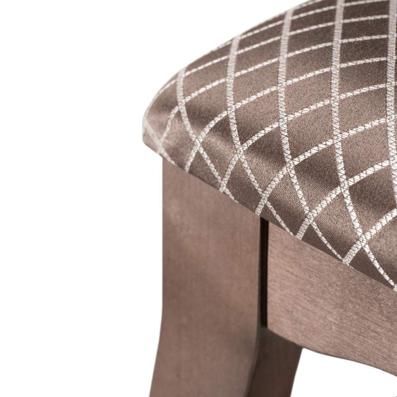 Материал каркаса - массив березы; Материал сиденья - ткань; Материал обивки - ткань; Цвет ножек - орех; Ширина - 35; Глубина - 35; Высота сиденья - 45;
