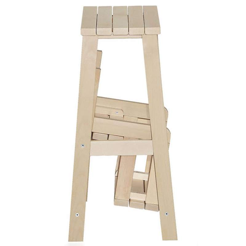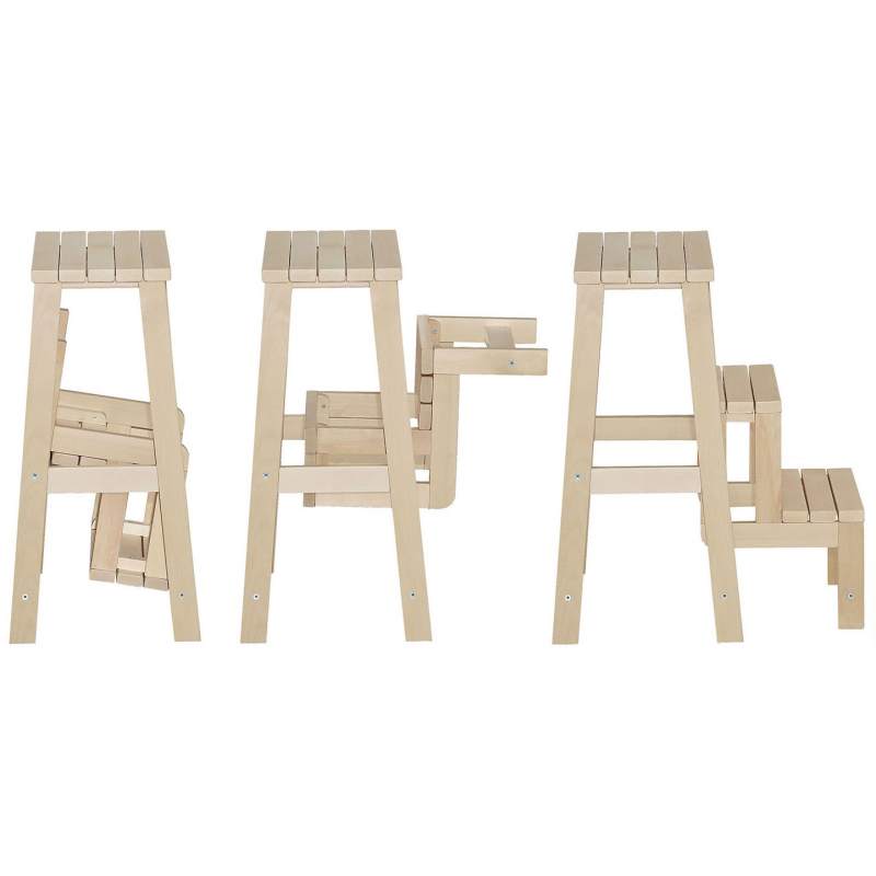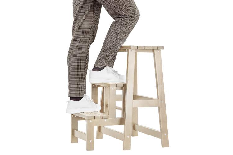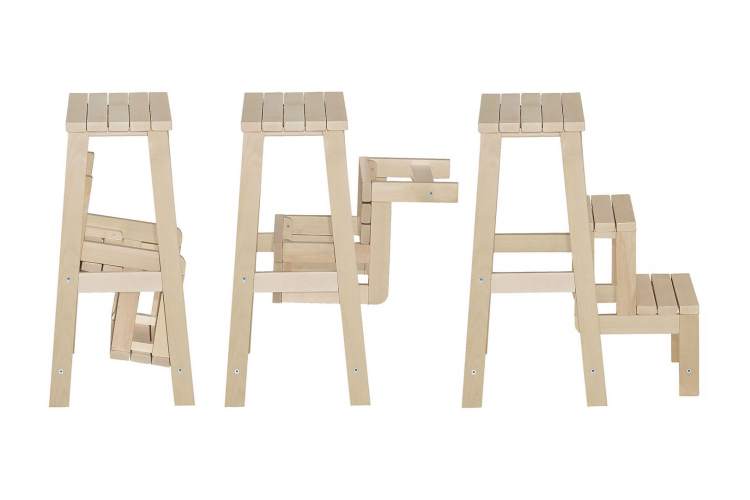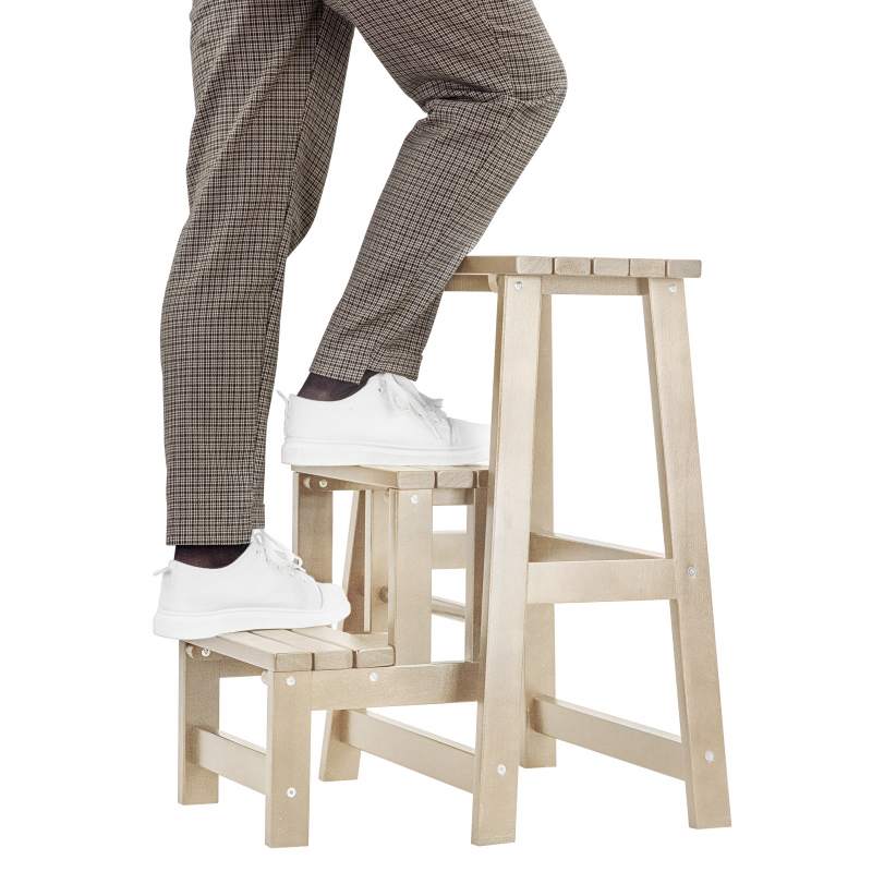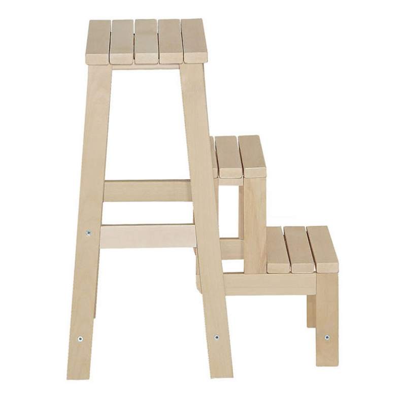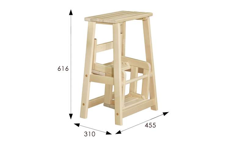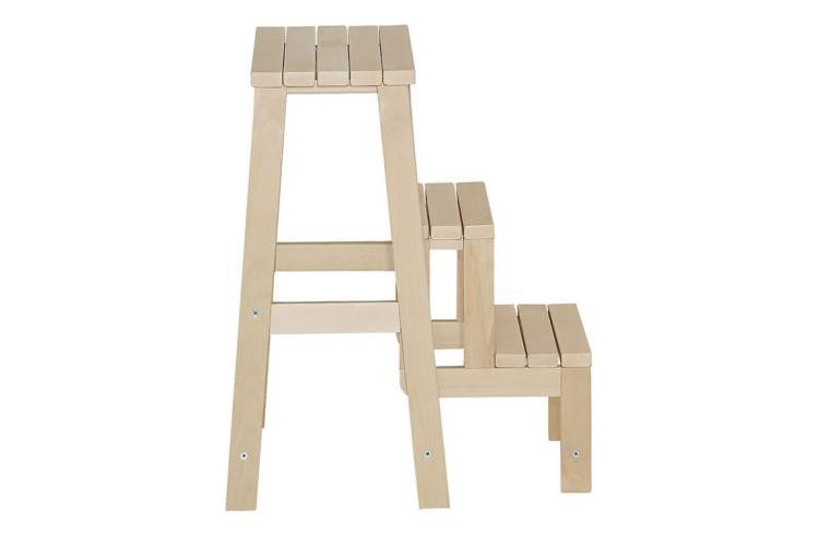 Высокий табурет (обратите внимание на высоту сиденья в характеристиках), одновременно и небольшая стремянка на три ступени. Вещь незаменимая в современных кухнях. Высоко расположенные вместительные навесные ящики часто оказываются недоступными для домохозяек именно из-за высоты. Даже обычного табурета иногда не хватает для того, чтобы дотянуться до нужных вещей на верхних полках. Стремянка в разобранном виде позволяет достать рукой до потолка в квартире человеку даже не самого большого роста. В собранном виде – дополнительное место для сидения и не бросается в глаза. Несколько вариантов цветов позволяют подобрать наиболее подходящий в вашу кухню. Каркас из натурального дерева делает стремянку легкой и прочной. Отличное приобретение, может служить подарком хозяйке.
