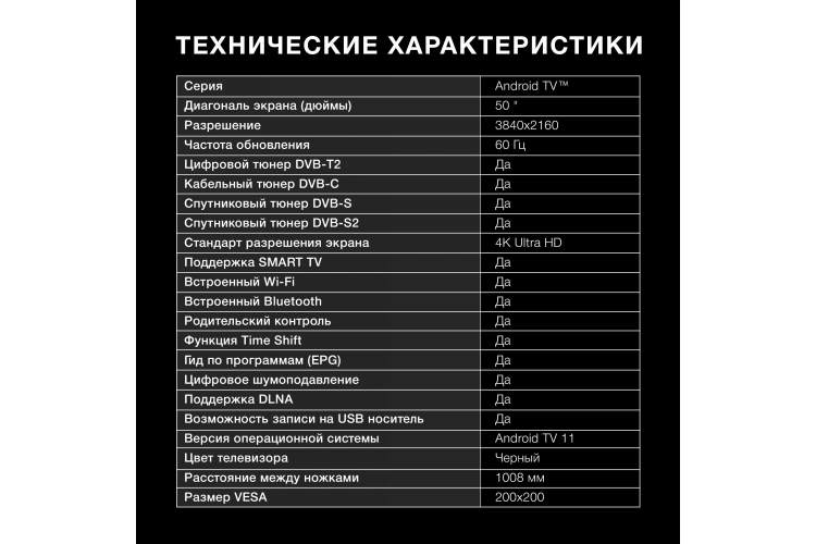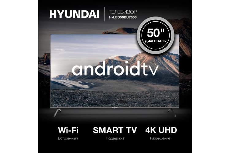 Телевизор LED/ Телевизор LED Hyundai 50" H-LED50BU7006 Android TV Frameless Metal черный 4K Ultra HD 60Hz DVB-T2 DVB-C DVB-S DVB-S2 USB WiFi Smart TV