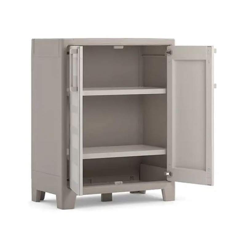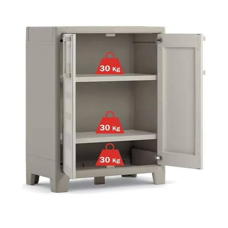 Тумба Gulliver сочетает в себе функциональность и современный дизайн. Эта модель может использоваться в прачечной, прихожей, кладовой, гараже или даже домашней мастерской. Низкий шкаф Gulliver изготовлен из высококачественного пластика, гарантирующего долговечность. Прочная и надежная конструкция полностью водонепроницаема, что позволяет использовать его на открытом воздухе в качестве практичного места для хранения вещей на балконе или террасе. Низкий шкаф Gulliver оснащен регулируемыми ножками и двумя практичными полками, с максимальной грузоподъемностью 30 кг. Одним из главных преимуществ этой модели является возможность регулировки высоты полок в соответствии с вашими потребностями. Большая вместимость обеспечивает полную свободу в организации пространства в вашем доме. Минималистичная и элегантная форма и сдержанные цвета делают этот практичный шкаф идеальным дополнением к любому интерьеру. Низкий шкаф Gulliver разработан для легкой самостоятельной сборки. Температурный режим использования -5°C to +40°C. Это способствует долгому сроку службы и делает пластиковые шкафы подходящей мебелью для хранения хозяйственного инвентаря, садовой мебели, различного оборудования, бытовых аксессуаров и предметов в помещении.