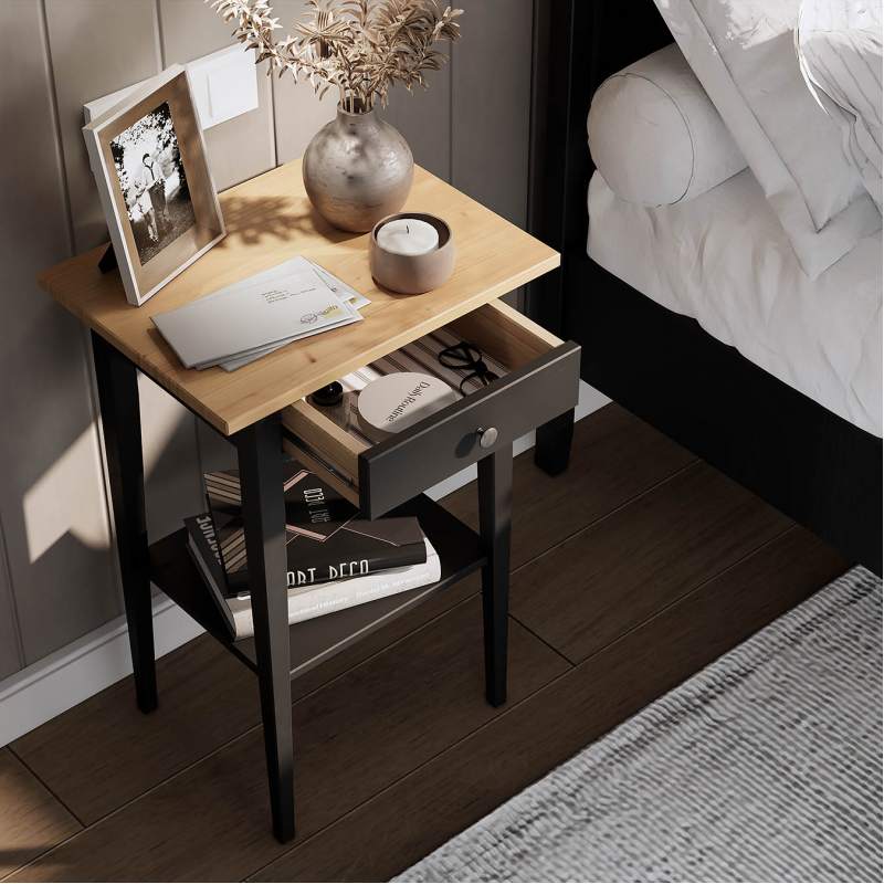 Верхний ящик и нижняя полка предоставляют удобное место для хранения книг, мелочей или других необходимых вещей.