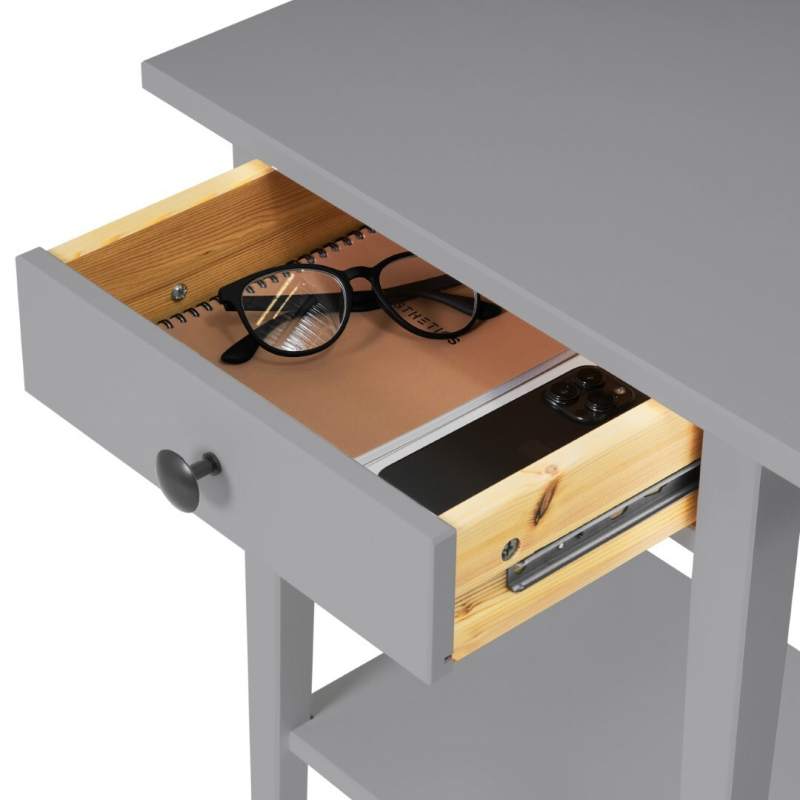 Верхний ящик и нижняя полка предоставляют удобное место для хранения книг, мелочей или других необходимых вещей.