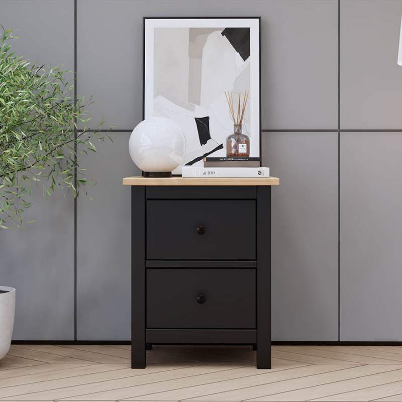 Плавное выдвижение ящиков обеспечивается роликовыми направляющими, а металлические ручки добавляют изделию стильный акцент.