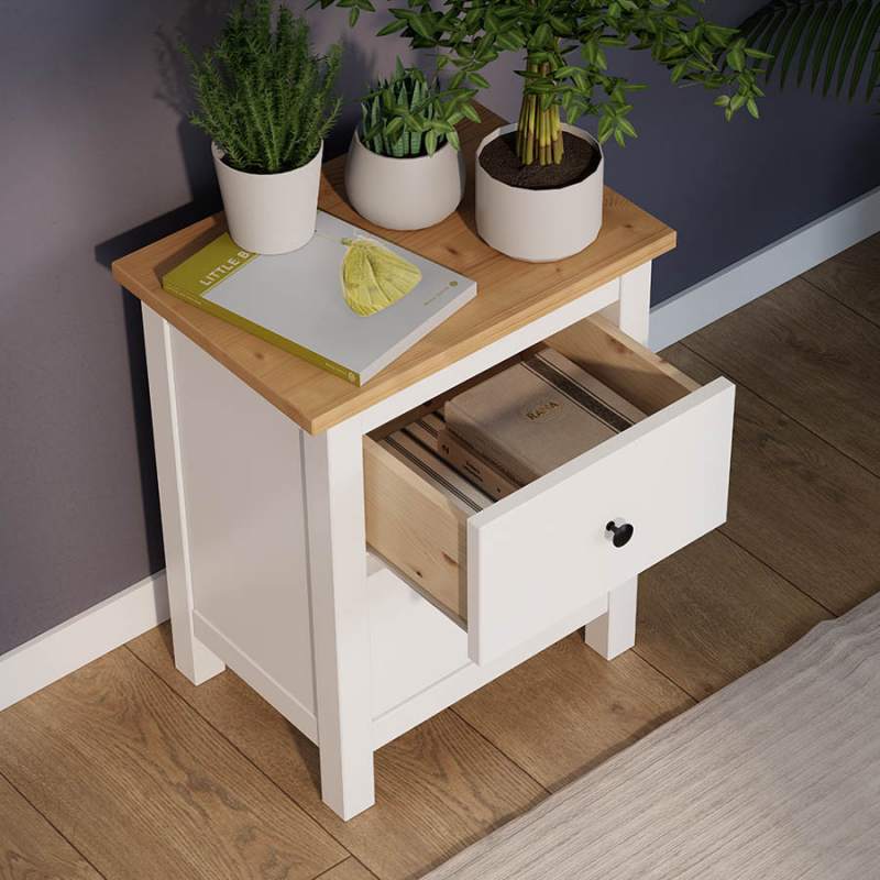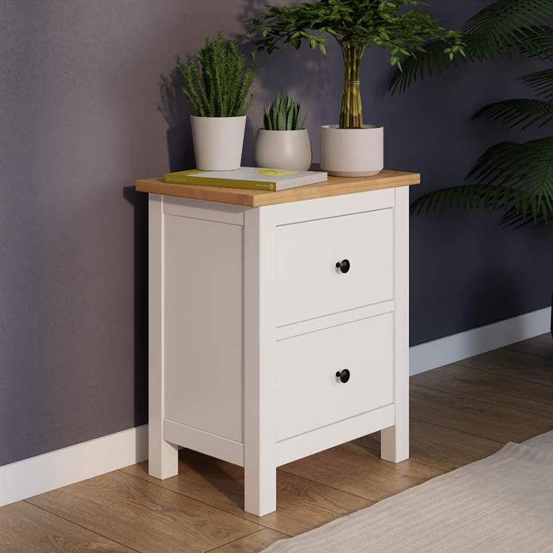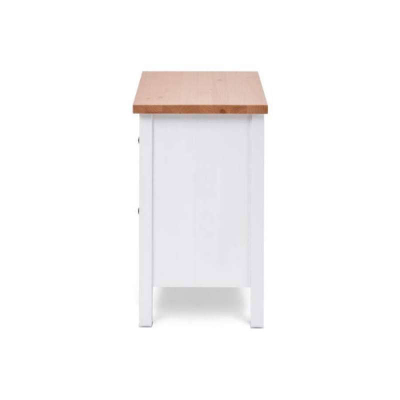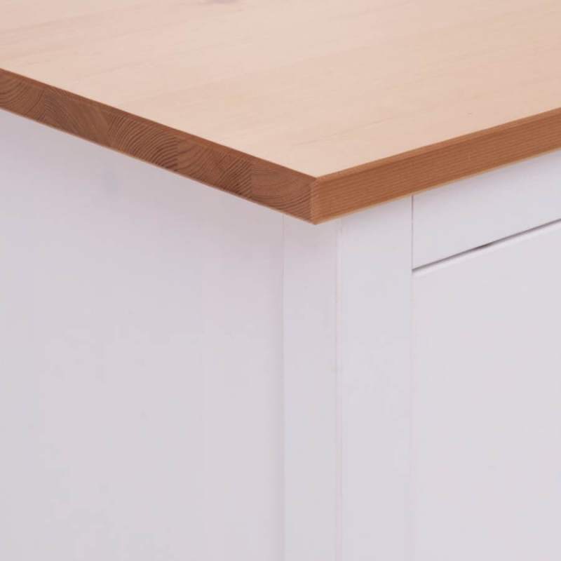 Материал комода — прочный и долговечный массив сосны. Матовое покрытие выполнено с использованием красителей на водной основе и лака на основе акриловых смол с УФ-отверждением. Оно подчеркивает природную красоту древесины и защищает её от внешних воздействий.