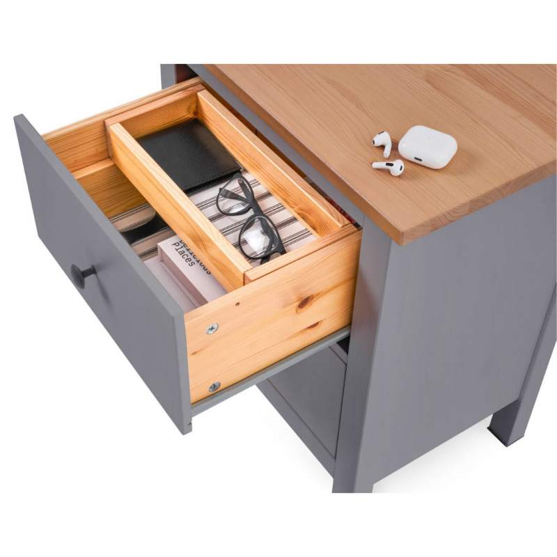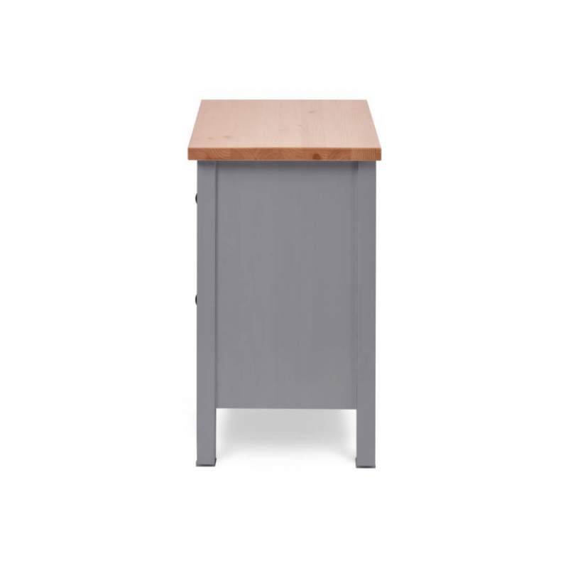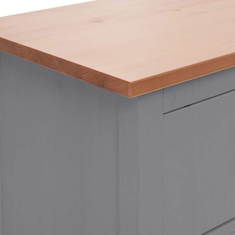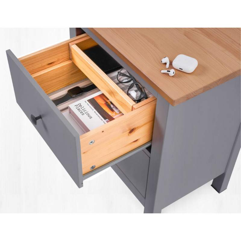 Материал комода — прочный и долговечный массив сосны. Матовое покрытие выполнено с использованием красителей на водной основе и лака на основе акриловых смол с УФ-отверждением. Оно подчеркивает природную красоту древесины и защищает её от внешних воздействий.