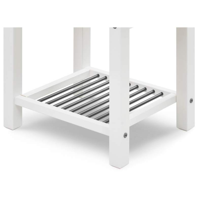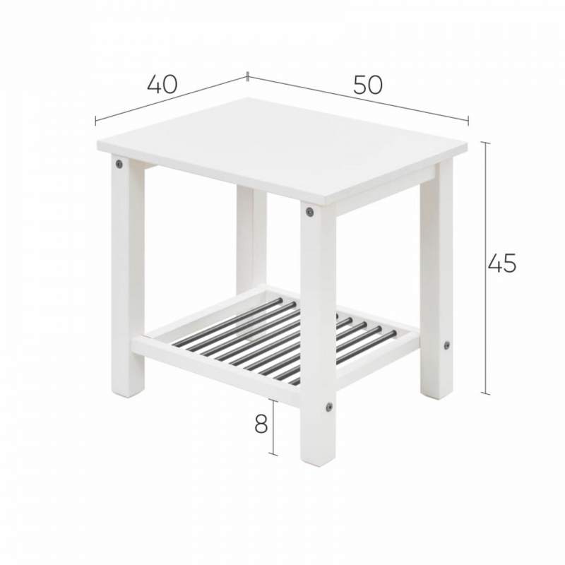 Полка прикроватной тумбы сделана из стальных труб.