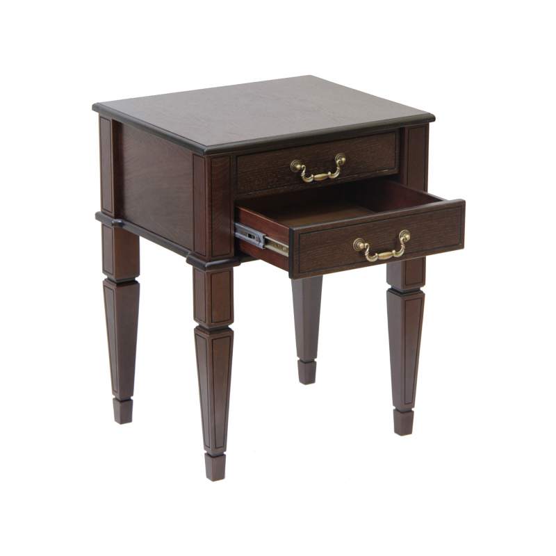 Прикроватная тумба Васко 118 – классическая прикроватная тумба из коллекции предметов интерьера «Васко». Коллекцию объединяют изящно нанесенные гравировки на опоры и фасады ящиков и конусообразные ножки. Гравировки подчеркивают элегантные утонченные формы деталей предметов интерьера. Тонкие линии к тому же патинированы, что дополнительно выделяет их на изделиях. Фасады ящиков и поверхность тумбы декорированы натуральным шпоном дуба. Этот материал обладает выдающимся эстетическим свойством – текстура дерева проявляется даже под покрывными отделочными материалами. При этом не теряется ощущение теплоты от соприкосновения с натуральным деревом.