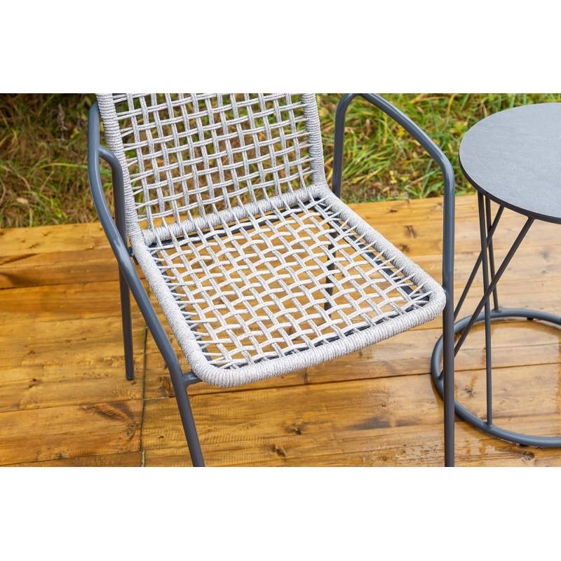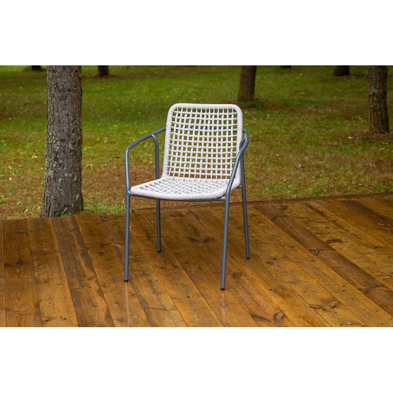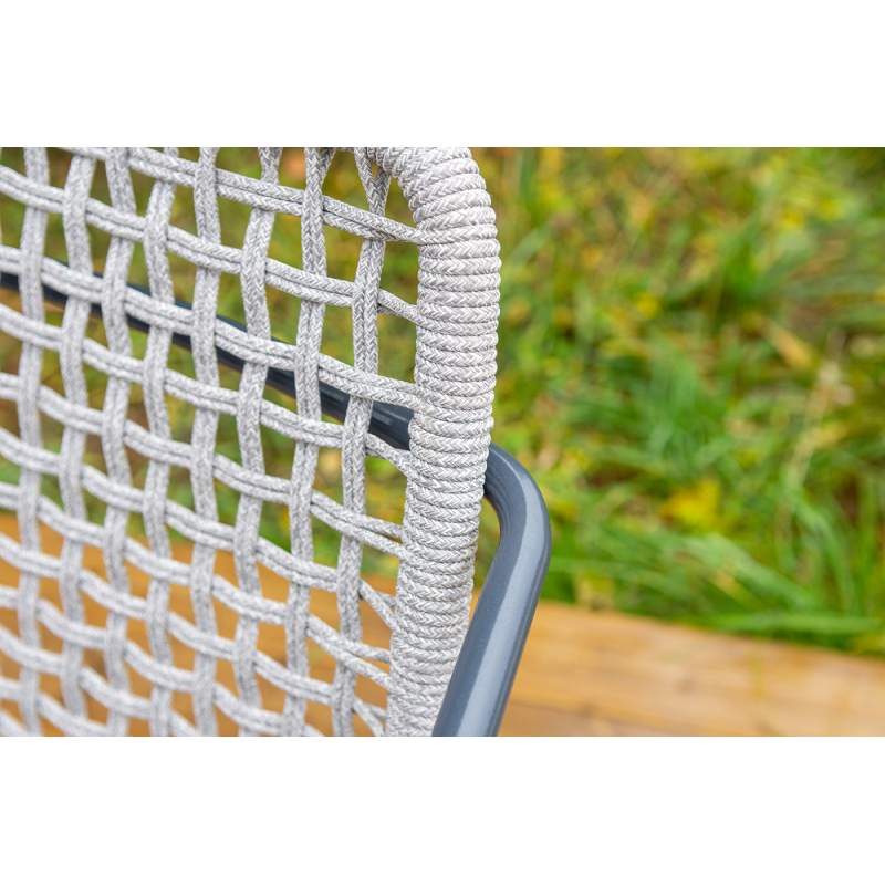 Стул «Тунис» — плетеная модель из роупа (полиэфирной веревки) с алюминиевым каркасом темно‑серого цвета (RAL7024).
