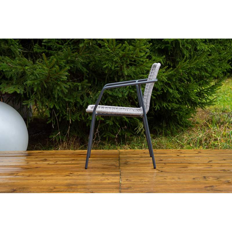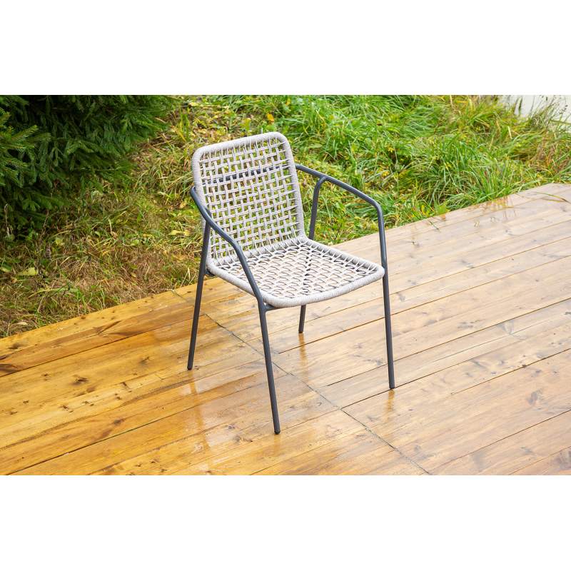 "Тунис" стул плетеный из роупа, каркас алюминий темно-серый (RAL7024), роуп светло-серый