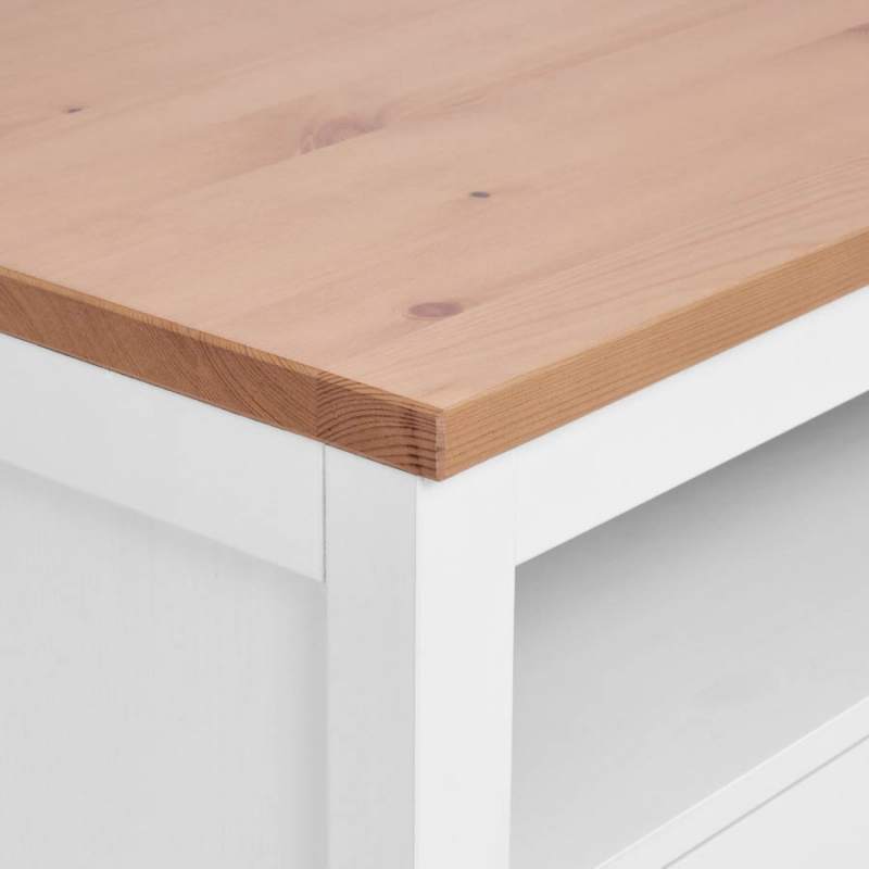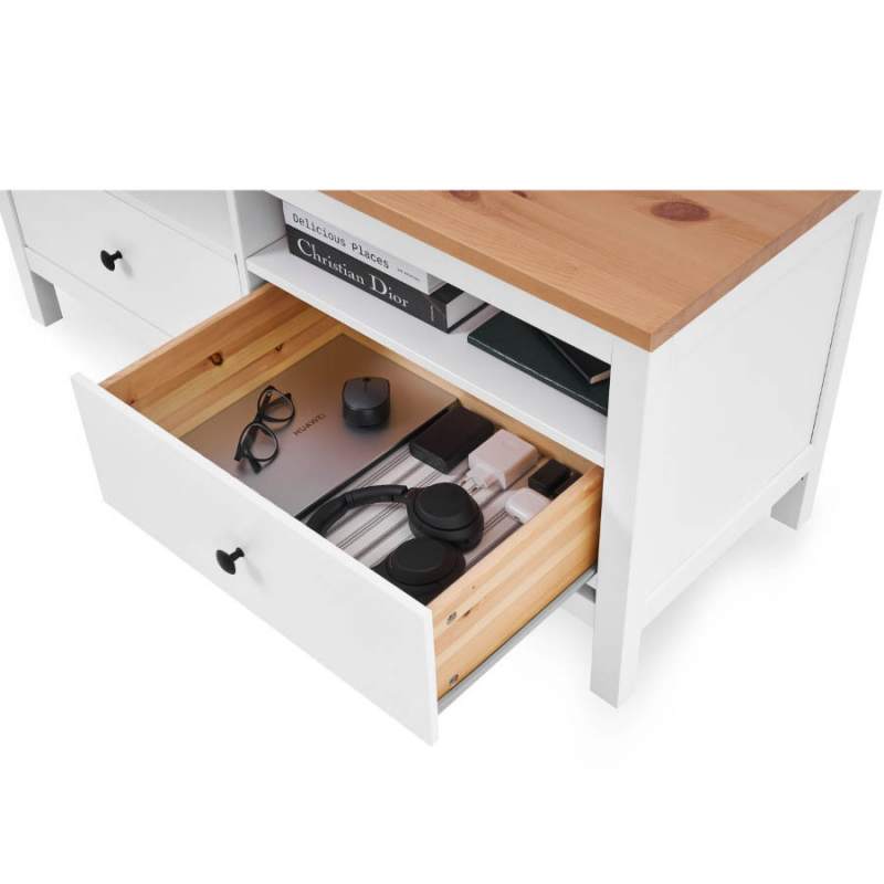 Имеет два ящика на роликовых направляющих, которые изнутри не покрашены, как основная часть, что придает им естественный вид.