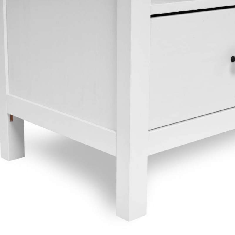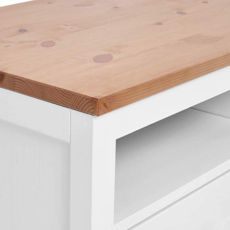 Имеет три ящика на роликовых направляющих, которые изнутри не покрашены, как основная часть, что придает им естественный вид.