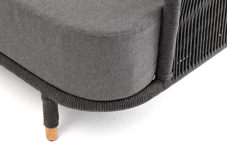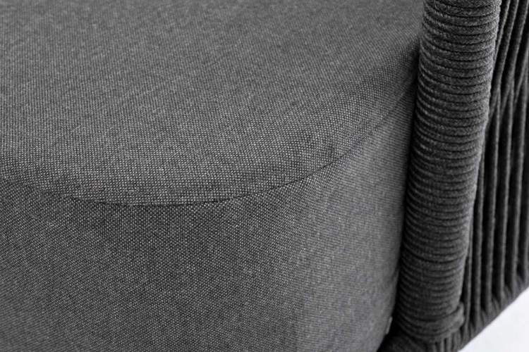 "Верона" диван 3-местный плетеный из роупа, каркас алюминий темно-серый (RAL7024) муар, роуп темно-серый круглый, ткань темно-серая 027
