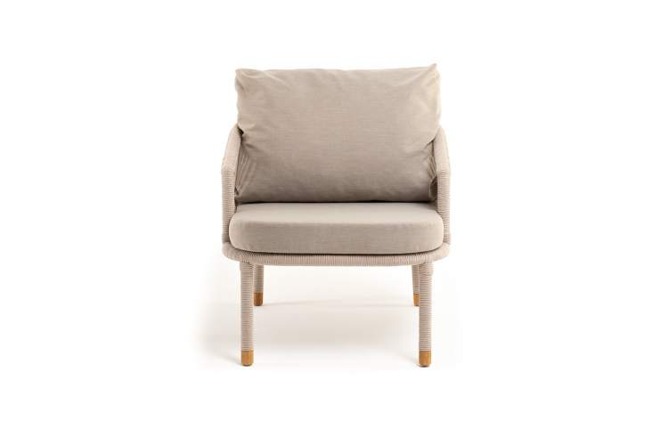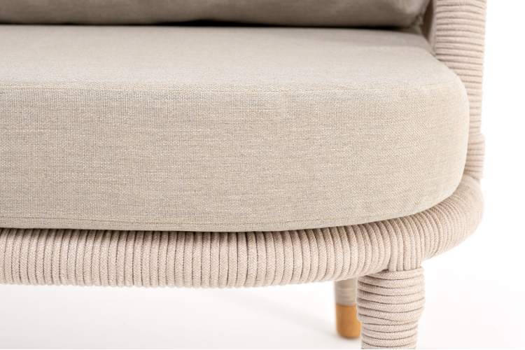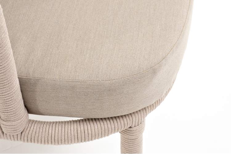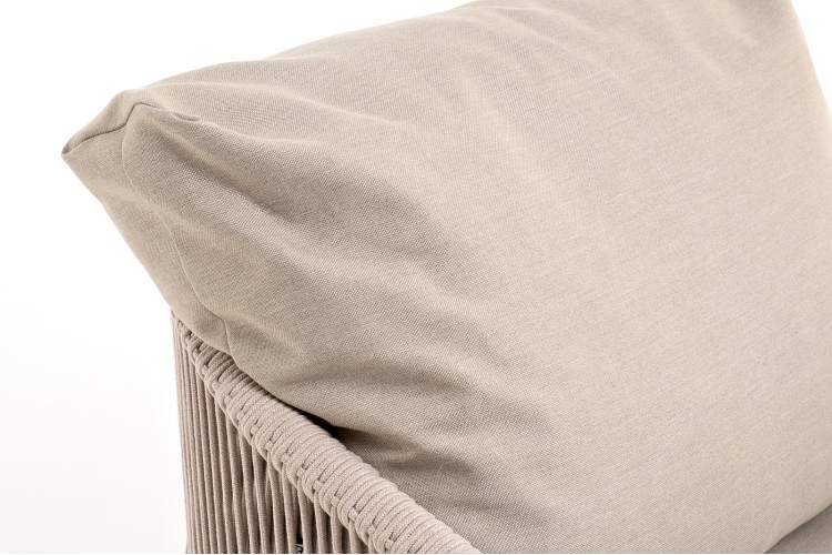 "Верона" кресло плетеное из роупа, каркас алюминий белый муар, роуп бежевый круглый, ткань бежевая 15052