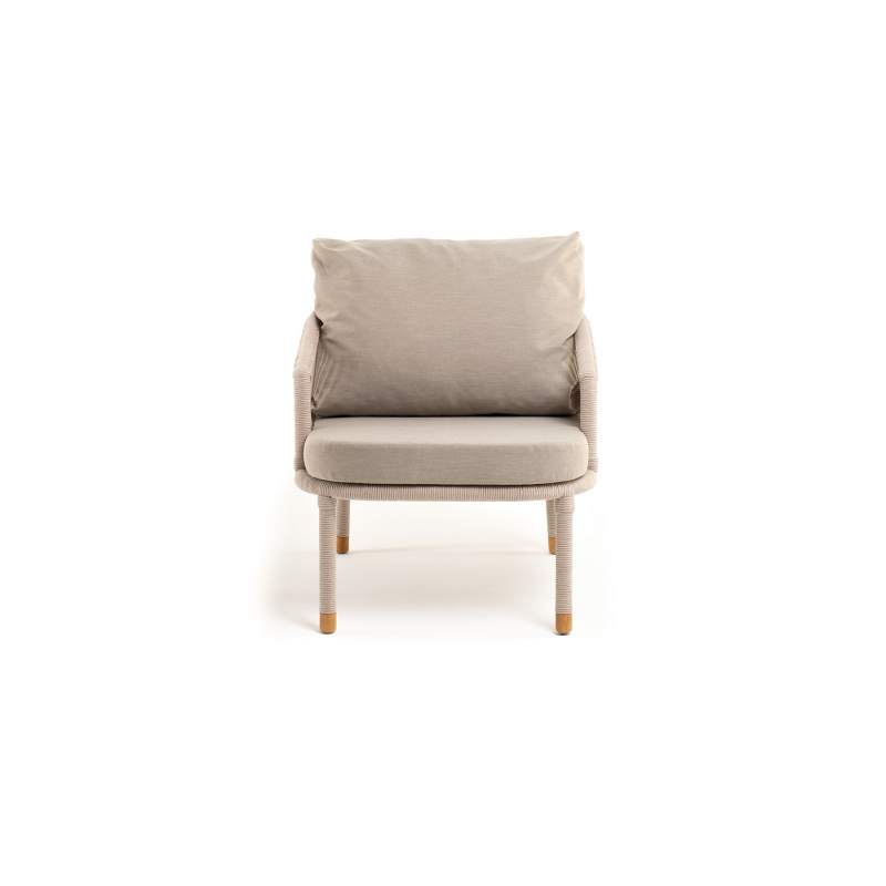"Верона" кресло плетеное из роупа, каркас алюминий белый муар, роуп бежевый круглый, ткань бежевая 15052