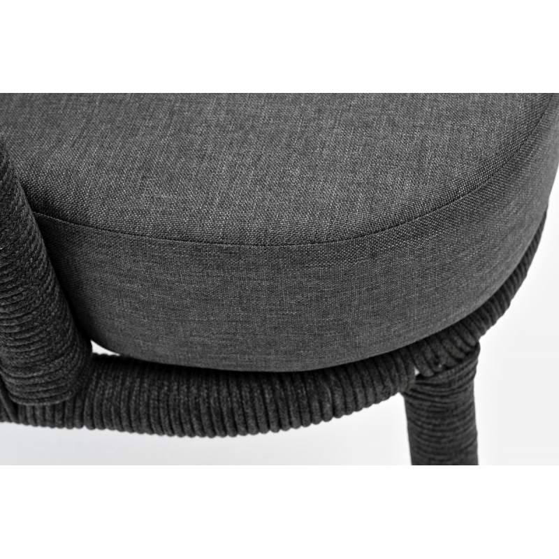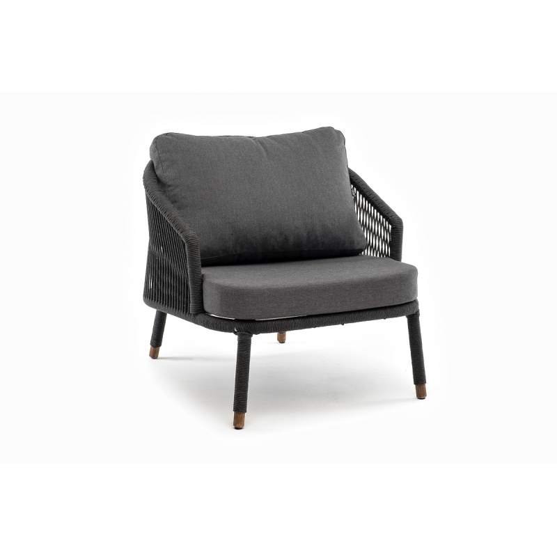 "Верона" кресло плетеное из роупа, каркас алюминий темно-серый (RAL7024) муар, роуп темно-серый круглый, ткань темно-серая 027