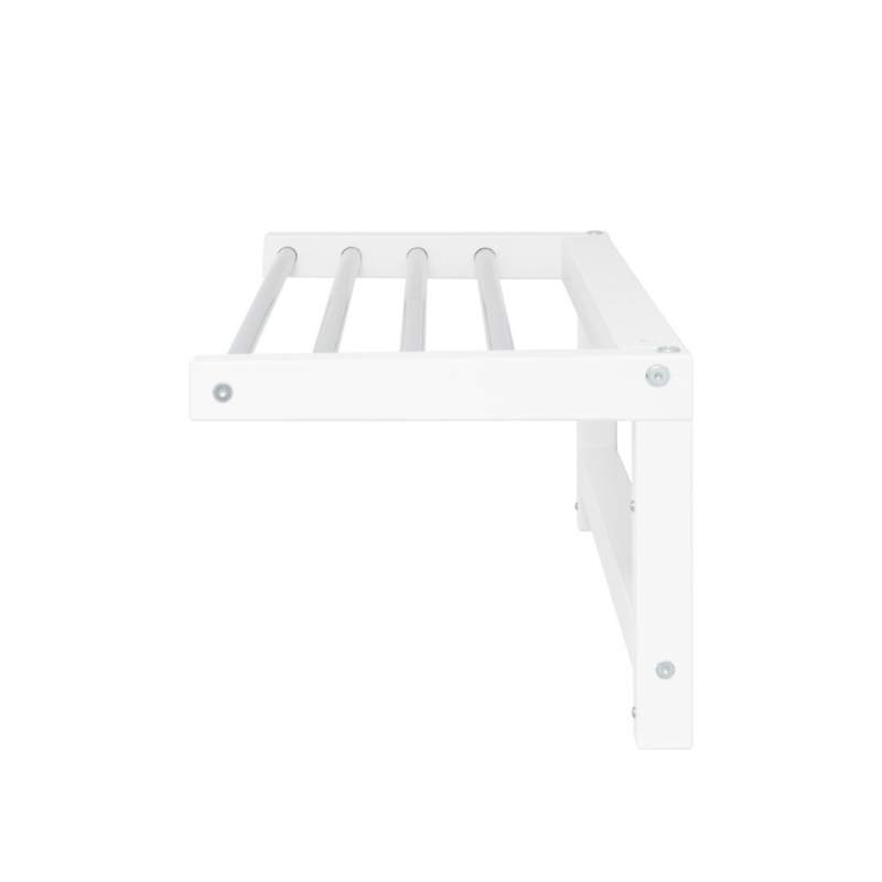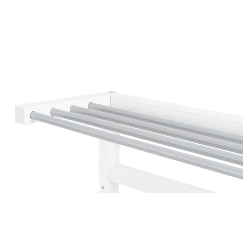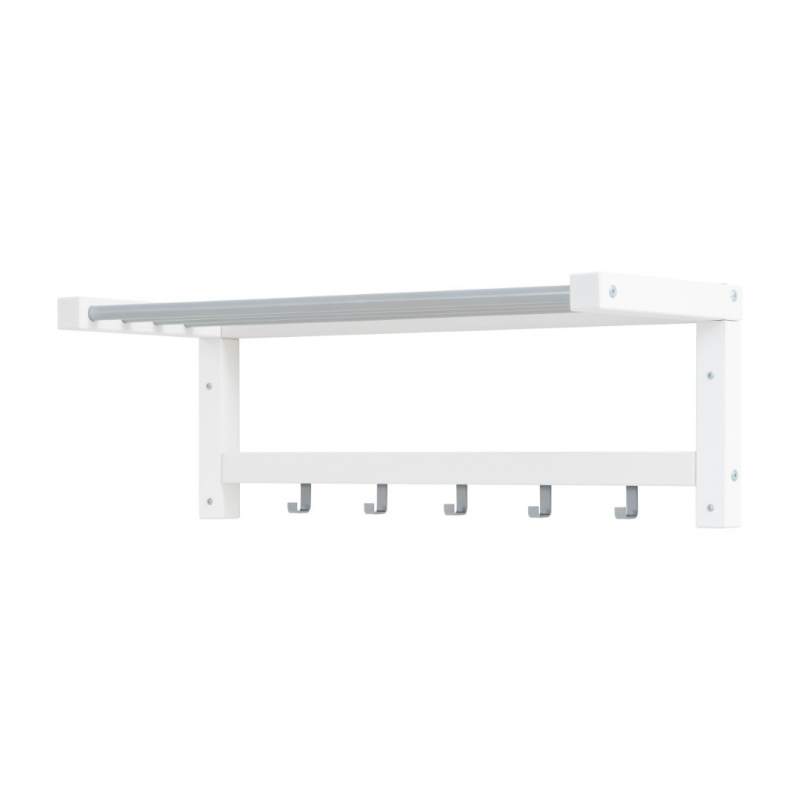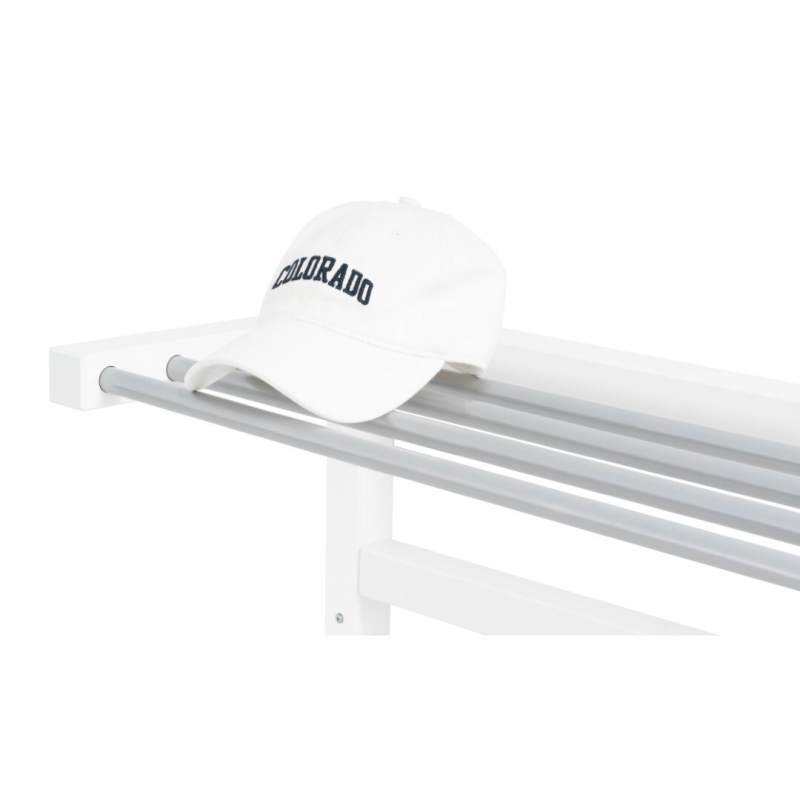Верхняя полка для головных уборов и аксессуаров также выполнена из металлических прутков.