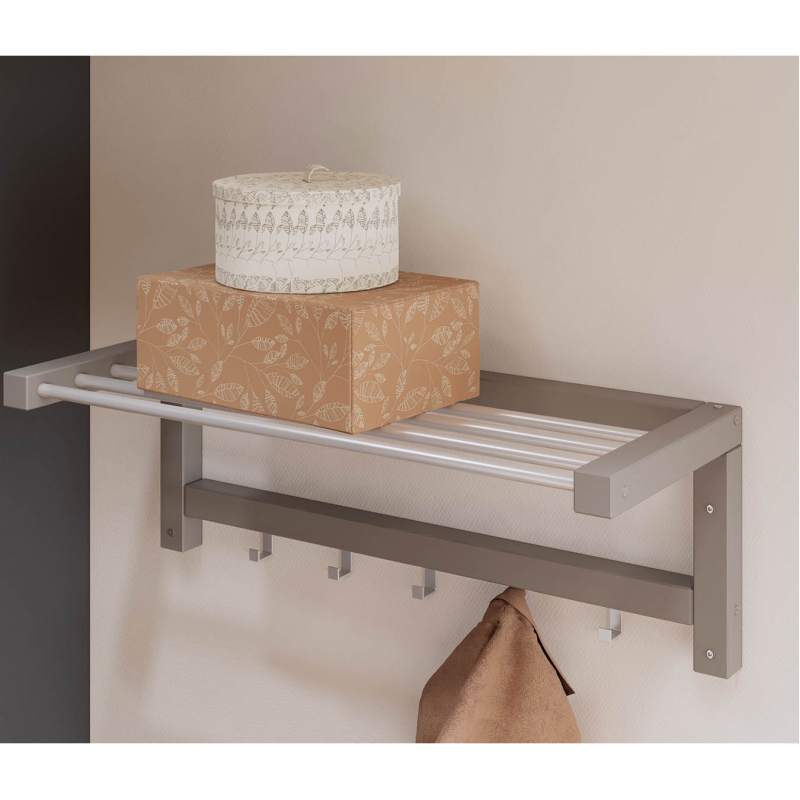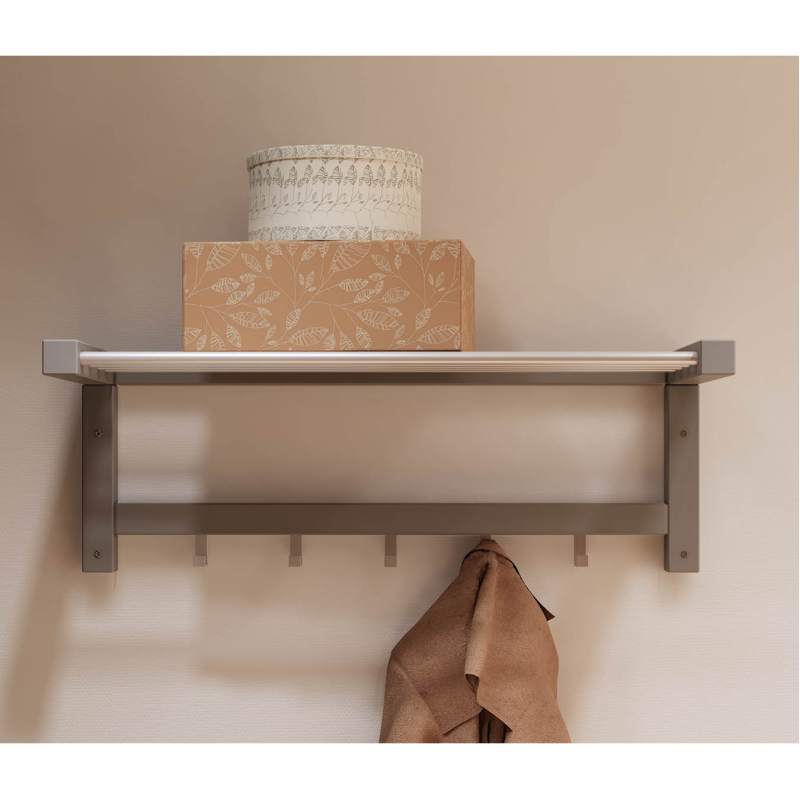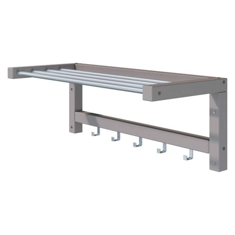 Верхняя полка для головных уборов и аксессуаров также выполнена из металлических прутков.