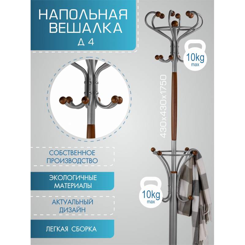 Вешалка напольная Д 4 металлик/ средне-коричневый