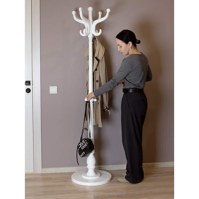 Деревянная напольная вешалка В 1Н — это не просто предмет интерьера, но и стильный акцент для вашего дома или квартиры. Изготовленная из массива бука и МДФ, она сочетает в себе прочность и изысканность. Надёжные крючки выполнены из шпона березы и выдерживают нагрузку до 5 кг каждый. В сумочной зоне модели расположены 4 удобных крючка из бука в форме шариков, каждый из которых рассчитан на нагрузку до 3 кг. Деревянная структура изделия гармонично вписывается в любые стили интерьеров, будь то классика или современный лофт.
