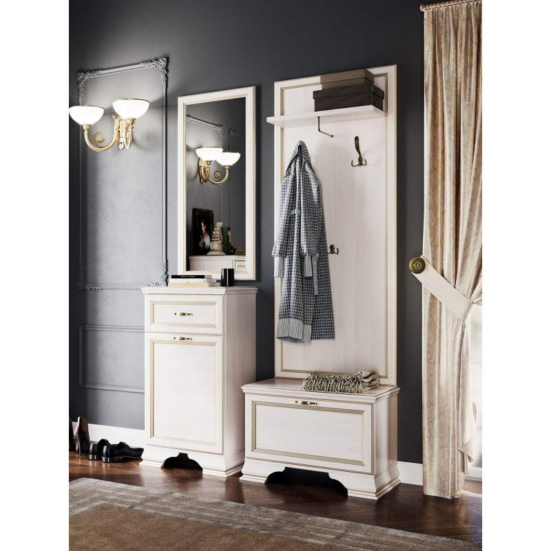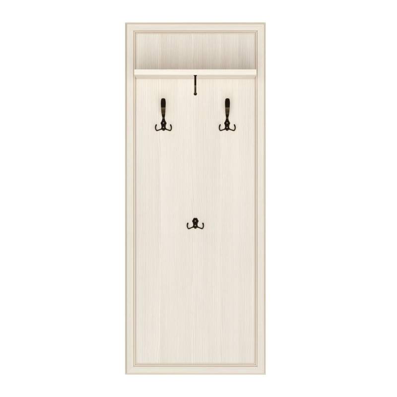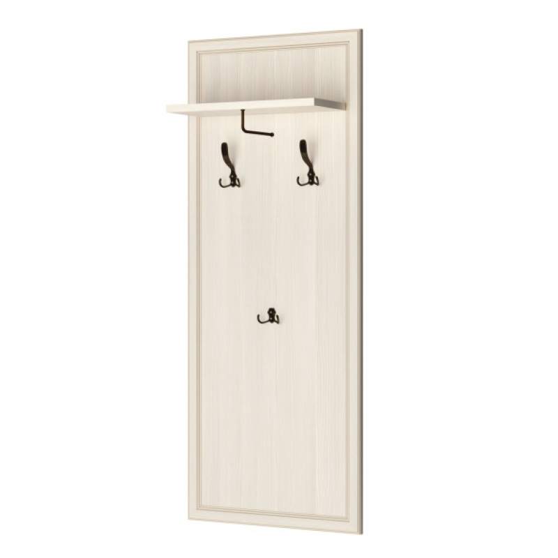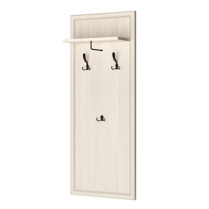 Вешалка «Сиена» гармонично сочетается с тумбой для обуви, и зеркалом. Благодаря универсальности коллекции, вы можете установить в прихожую высокий комод или шкаф. Обратите внимание на странички каталога с модулями« Сиена» для гостиной или спальни.Конструкция вешалки включает 2 ряда крючков: верхние трехрожковые и нижний двухрожковый крючки. Удобная полочка создана для головных уборов и аксессуаров, а под ней закреплена небольшая штанга для одежды на вешалках.Материалы изготовления модуля - ЛДСП в профиле МДФ в исполнении «бодега белый» с золотой патиной. Лицевая фурнитура цвета «старая бронза» украшает изделие и подчеркивает классический стиль. Если вам нужно купить недорогую настенную вешалку в классическом стиле оцените достоинства изделия:- высококачественные материалы и фурнитура гарантируют долгую и безопасную эксплуатацию мебели;- вешалка способна разместить большое количество одежды благодаря конструкции крючков;- цветовая гамма «бодега белый» - тёплый оттенок с древесной текстурой прекрасно сочетается практически с любым цветом стен.Коллекция «Сиена» благодаря модульному составу поможет создать вам свой неповторимый интерьер.