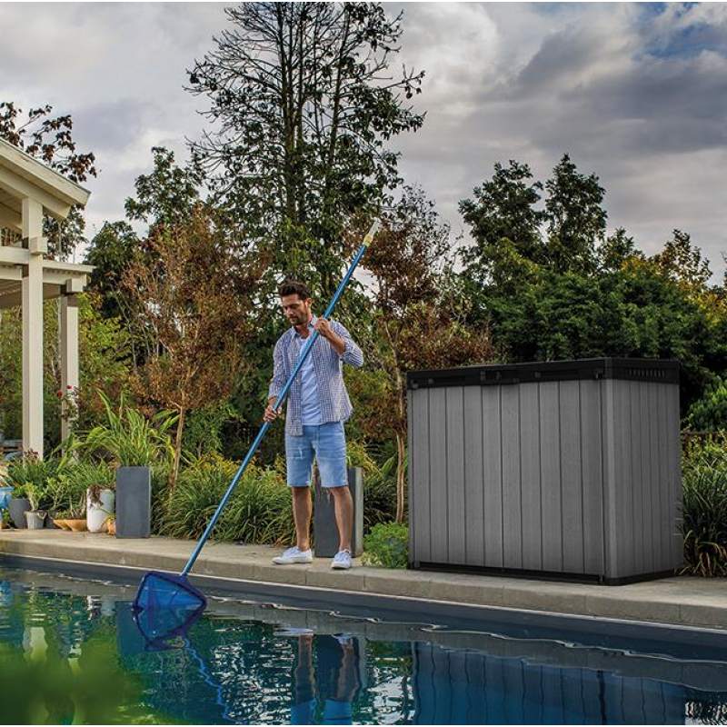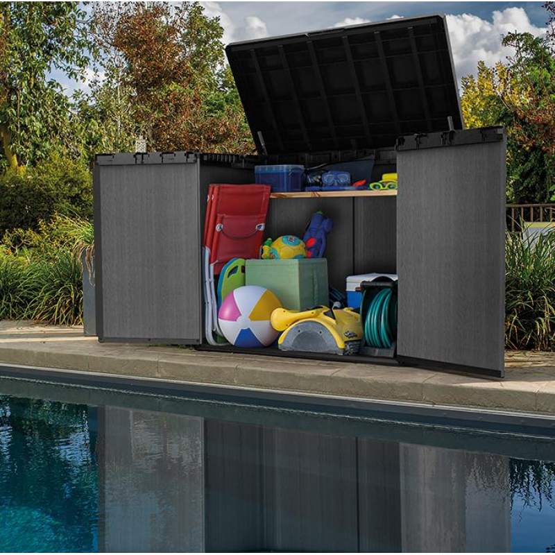Погрузитесь в мир идеального порядка и функциональности с садовым сундуком SIO Darwin. Открываемая крышка и двойные дверцы дают легкий доступ внутрь, где можно удобно хранить, класть и вынимать предметы. Сундук также оснащен механизмом закрытия. Встроенная вентиляция обеспечивает оптимальные условия хранения, защищая Ваши вещи от влаги и неблагоприятных погодных условий. Благодаря креплениям, удерживающим полки на своем месте, сундук обеспечивает максимальную функциональность и организацию пространства. Изготовленный по технологии Evotech+, он имеет элегантный вид "под дерево" и не нуждается в уходе. Проста в монтаже и устойчива к погодным условиям