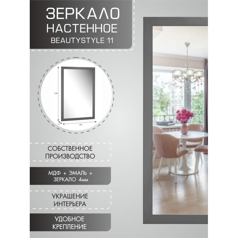 Зеркало настенное BeautyStyle 11 серый графит 118 см х 60,6 см