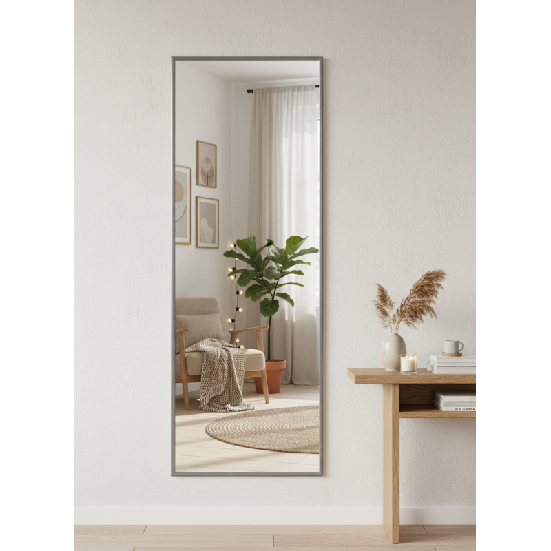 Зеркало настенное в раме Сельетта-5, матовое серебро 150 см х 50 см