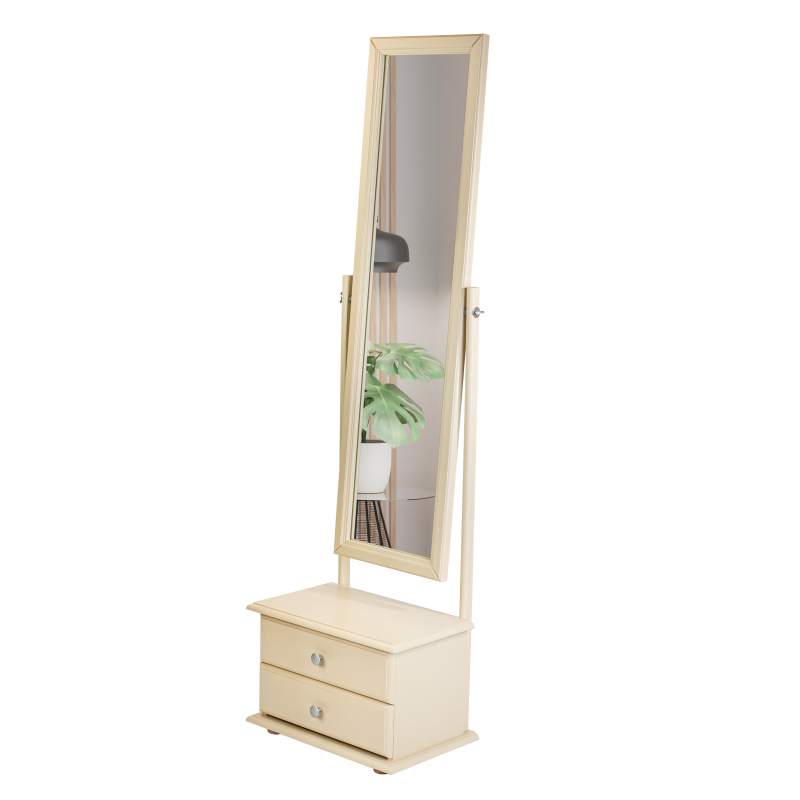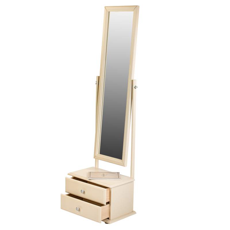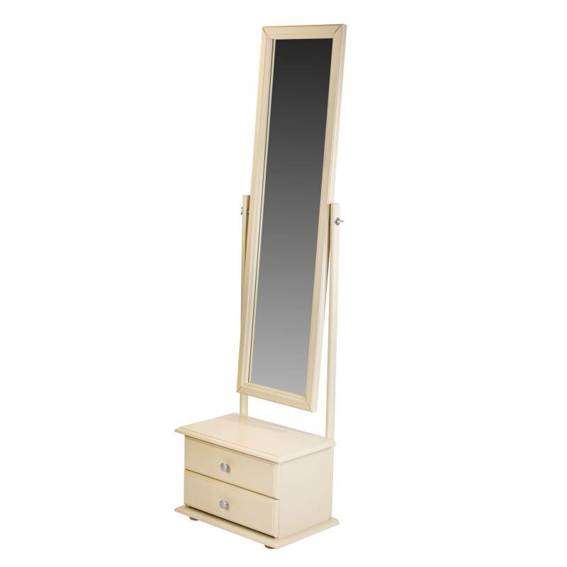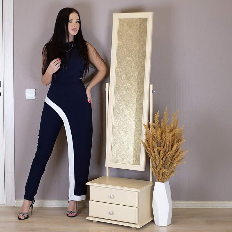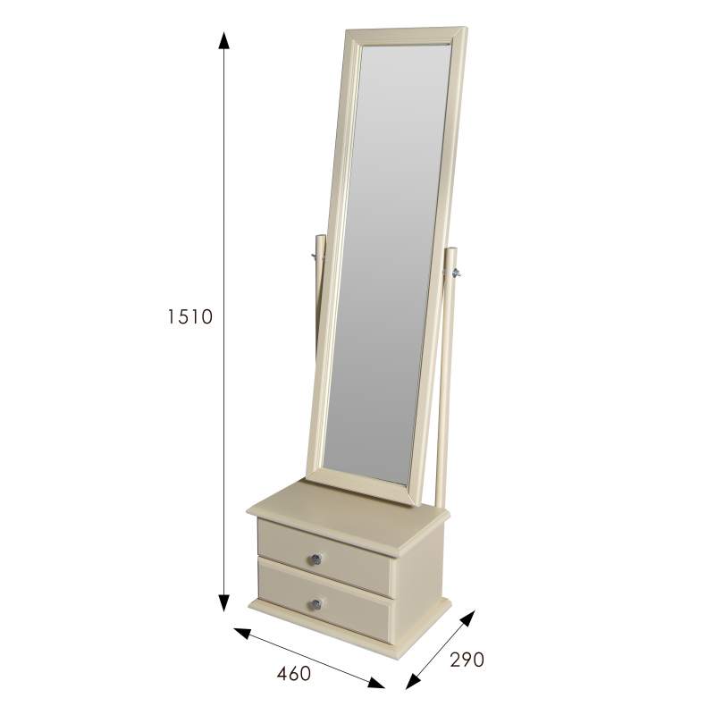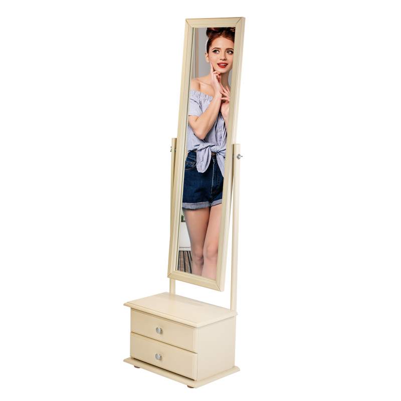 Напольное зеркало с изменяющимся углом наклона зеркального полотна и двумя вместительными выдвижными ящиками для мелочей.