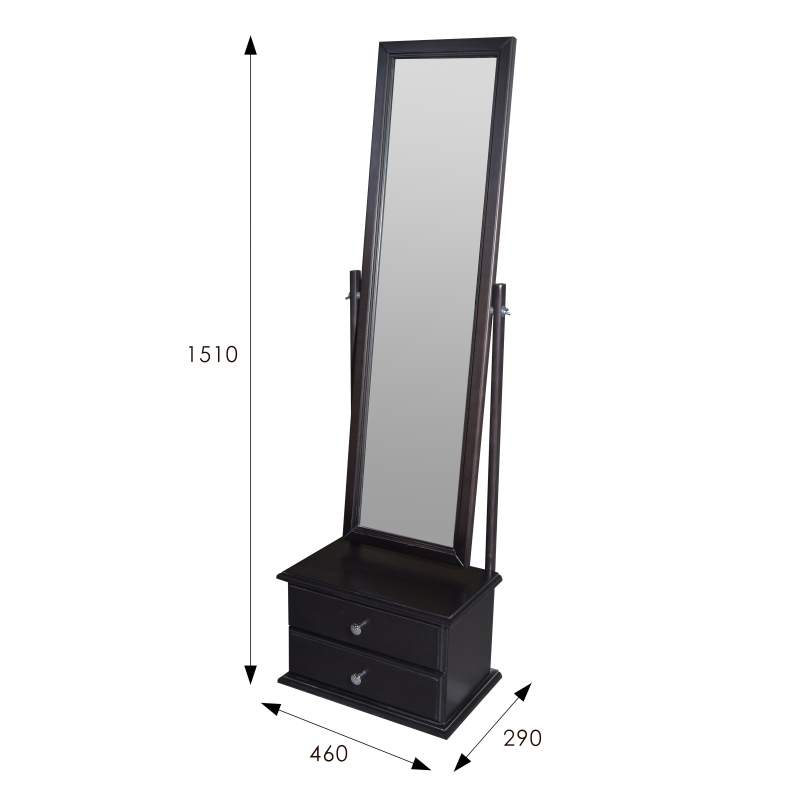 Напольное зеркало с изменяющимся углом наклона зеркального полотна и двумя вместительными выдвижными ящиками для мелочей.