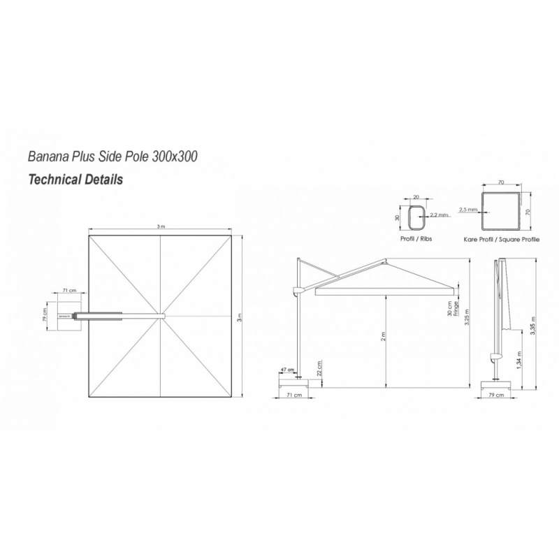 Зонт профессиональный 3х3 м Banana Plus Premier THEUMBRELA SEMSIYE EVI черный, натуральный