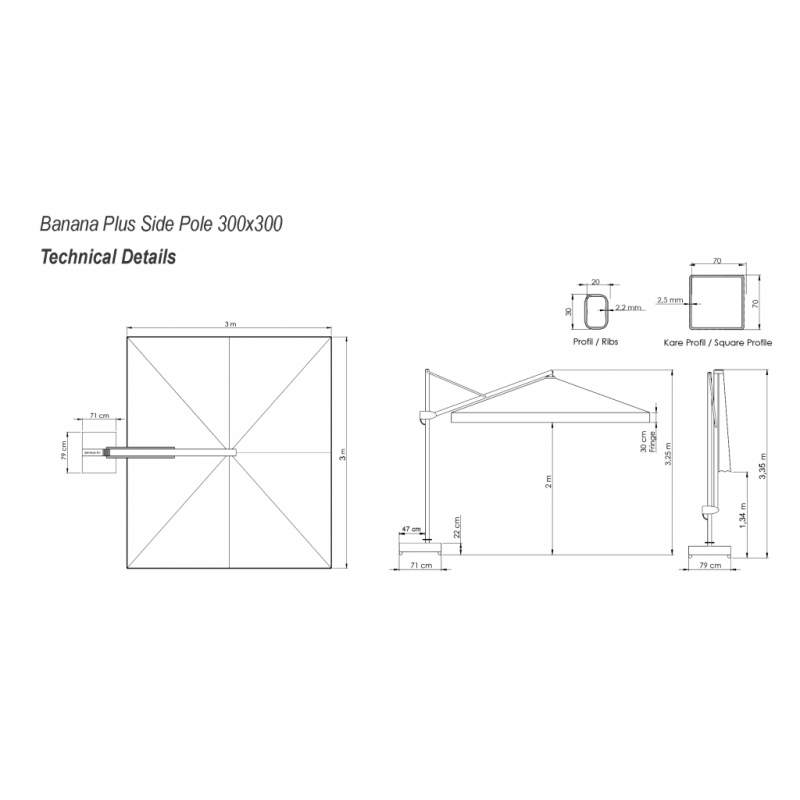 Зонт профессиональный 3х3 м Banana Plus THEUMBRELA SEMSIYE EVI коричневый, бежевый