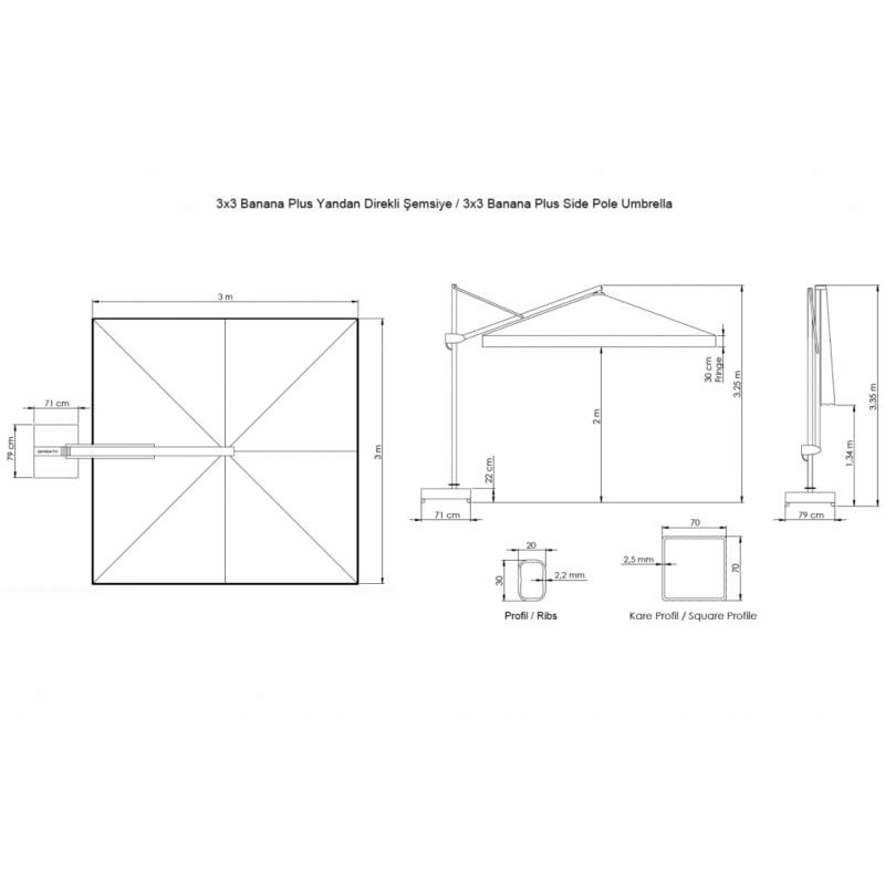 Зонт профессиональный 3х3 м Banana Plus THEUMBRELA SEMSIYE EVI серебристый, бежевый