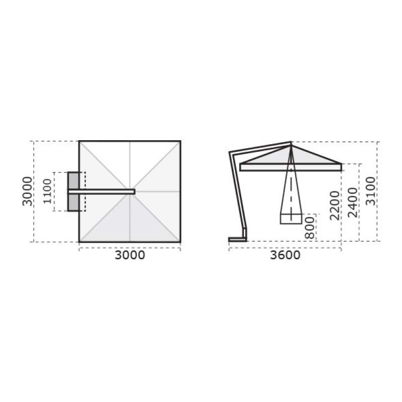 Зонт профессиональный 3х3 м Napoli Braccio Scolaro антрацит, слоновая кость