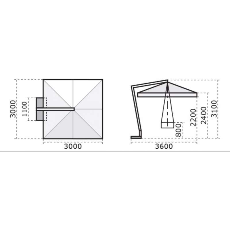 Зонт профессиональный 3х3 м Pompei Braccio Scolaro белый, слоновая кость