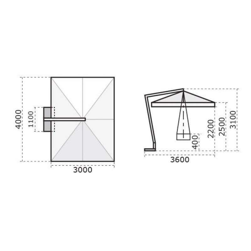 Зонт профессиональный 3х4 м Napoli Braccio Scolaro антрацит, слоновая кость