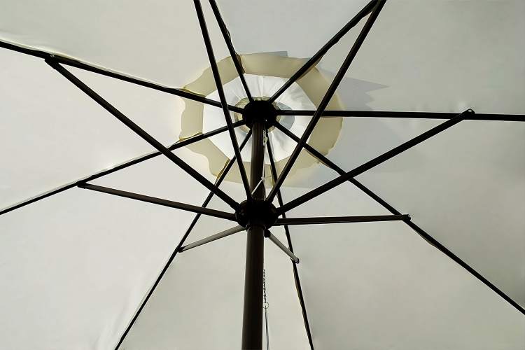 В конструкции использованы 8 овальных спиц размером 12х18 мм и механизм открывания push-up. Металлические толстые спицы выдерживают сильнейшую нагрузку ветра.